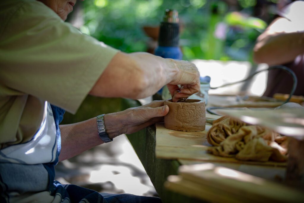 Der Höhepunkt des Kurses ist der Brand der Stücke im mit Holz befeuerten Brennofen und das anschließende Abräuchern. In diesen Tagen werden wir lernen, ganz bewußt mit Erde, Wasser, Feuer und Luft umzugehen. Die hergestellten Stücke werden ein Leben lang an diese Zeit voller Kreativität und Freude erinnern. Sie halten sich in diesen Tagen in einem Umfeld auf, in dem nicht nur mit dem Erdenton gearbeitet wird.