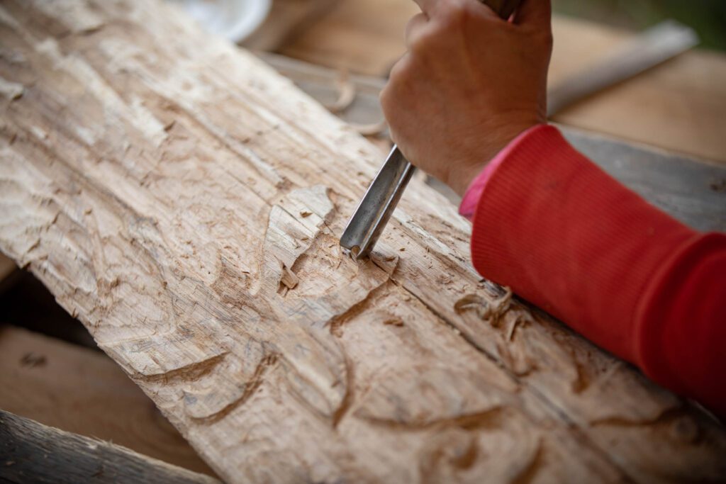 Die Ideen entstehen beim Zeichnen und Modellieren und beim Betrachten des Holzes. Schritt für Schritt werdet ihr angeleitet, eine Form mit Bildhauereisen und Holzklüpfel in das Holz einzuarbeiten. Gern können eigene Inspirationen mitgebracht werden in Form von Fundstücken, Hölzern, Fotos und Zeichnungen.