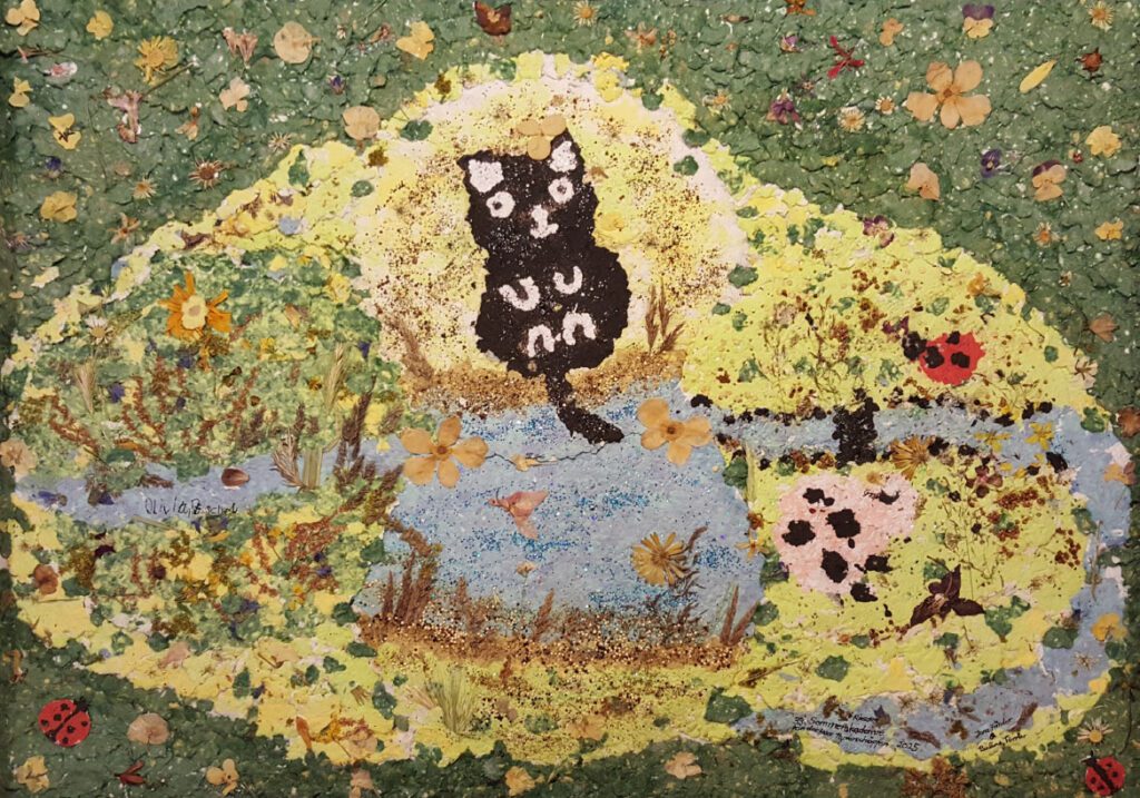 Der Werkstoff Papier wird auf besondere Art und Weise für den künstlerischen Selbstausdruck genutzt. Der Kurs ist ein „Eintauchen in die Welt der Papierflöckchen“, bei dem gezeigt wird, wie man Papier selber schöpfen und daraus wunderschöne Schmuckpapiere in Verbindung mit Pflanzen gestalten kann, einzeln als Bild und zusammengefügt zu einem größeren Bild, einer Papiercollage.