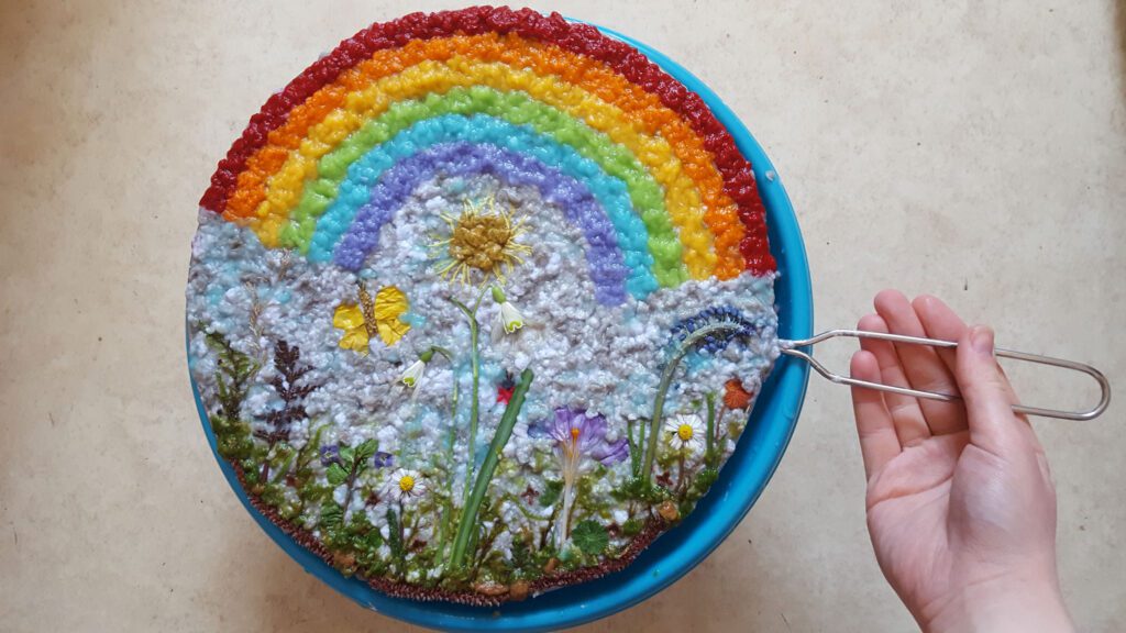 Papierschöpfen mit Bildgestaltung und Papierplastik