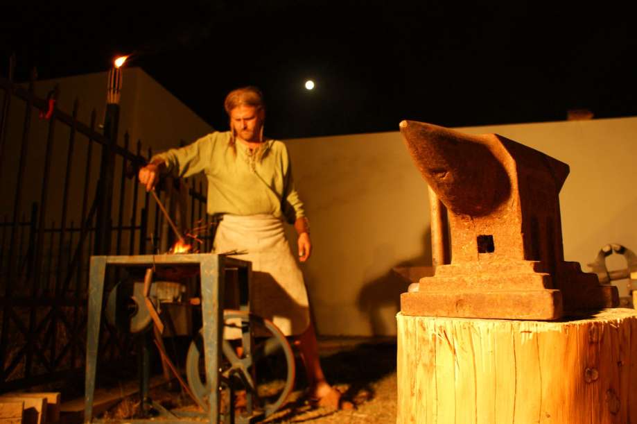 Auf Eurer Seite steht Feuer machen, mit verschiedene Hämmern schlagen, glühenden Eisen in Zangen halten, Rhythmus suchen, kratzen, pfeilen aber auch zuhören, üben und euer Projekt mit Zeichnung und